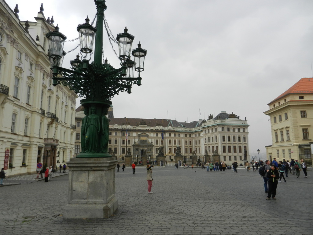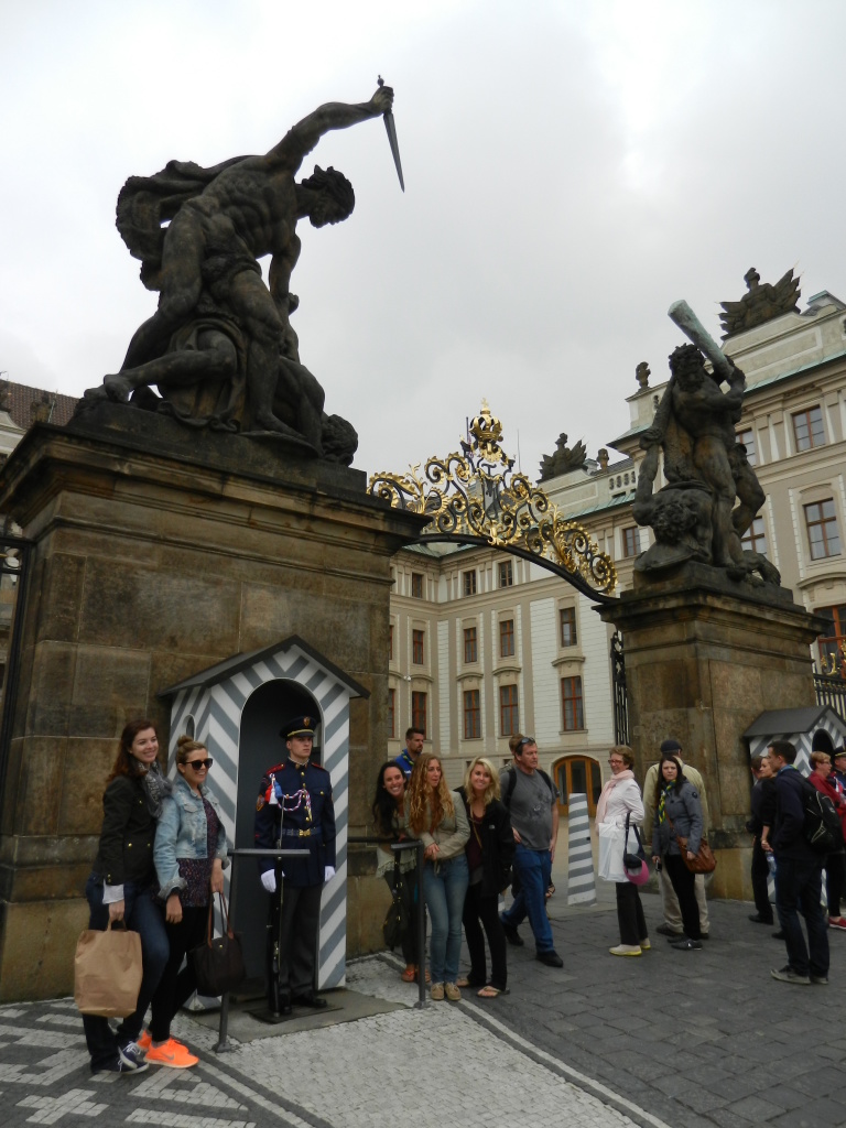The next day we opted to do a tour of Prague “castle” with the same guide. I say, “castle” because really it doesn’t look like your typical European castle. It looks more like a modern palace, but what kept it interesting were the layers. There was a brewery attached to a monastery tucked at the one end, a beautiful church (with some of the most incredible stained glass windows I’ve ever seen) bursting out from behind the modern palace façade, and an old toy museum with a naked boy statue out front (!).