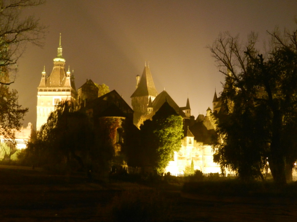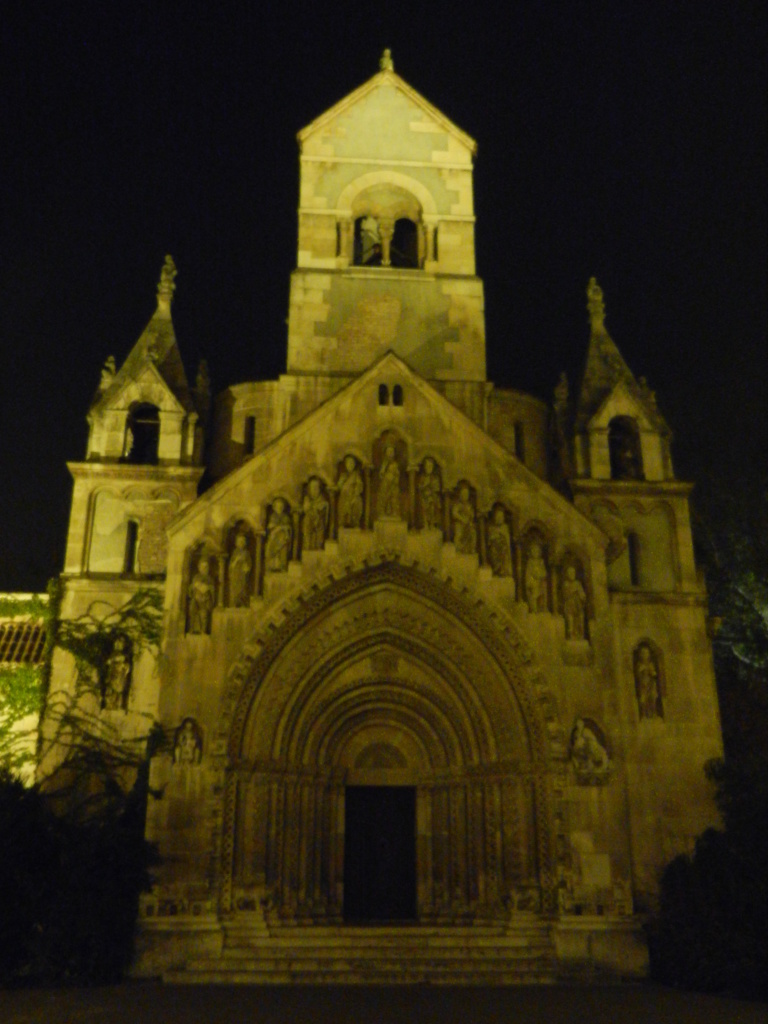 Feeling a little worn out from all the cycling, we dropped our bikes off outside Vajdahunyad Castle and warily crept up to its gates. This Transylvania-style stronghold looked menacing in the night, its sharp-tooth spires surrounded by mists, and I was excited with what evil vampires or spirits this castle might hold. I was disappointed to discover that the building was just the friendly museum of Agriculture and was made only 100 years ago for the nation’s millennial birthday. Within the fortress were several different architectural styles that didn’t seem to match, but Gabor soon explained to us that everything built in Vajdahunyad were replicas of famous monuments within the Hungarian Empire.