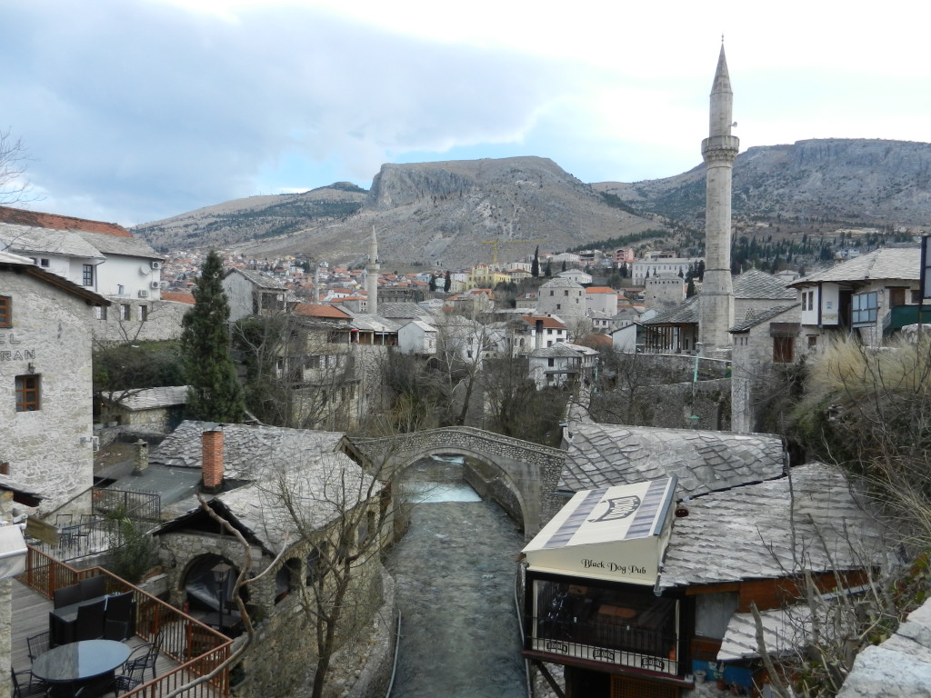 Though most travellers tend to catch a tour bus from Dubrovnik to Mostar on their beach vacations in Croatia, for 7 dollars Ashleigh and I rode a train all the way from Sarajevo through Bosnia’s captivating countryside. You have to get up early to catch it, but the Sarajevo-Mostar rail line offers an unbeatable price with the most stunning and enjoyable route I have ever taken. Like a snake we slithered along the edge of gorgeous valleys, tunnelling through the mountains to be met with increasingly breathtaking views. I scrambled from one side of the train to the other in an attempt to capture the rippling, snowy hills through dirty windows (so the photos turned out a bit smudgy).