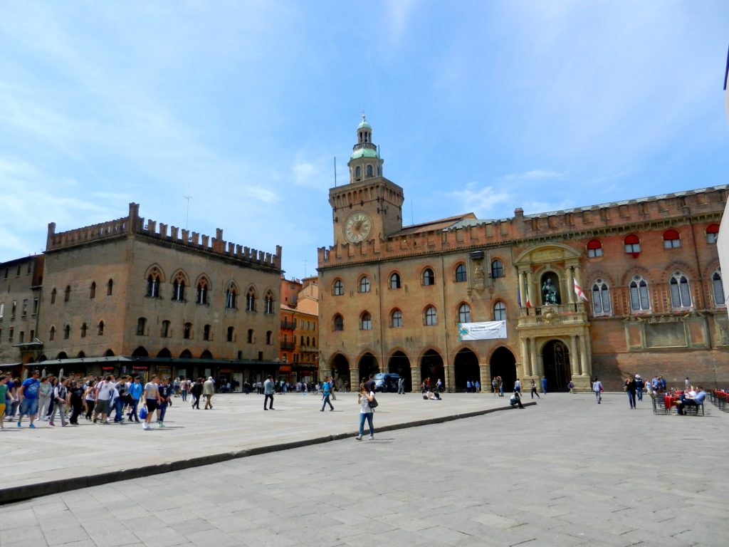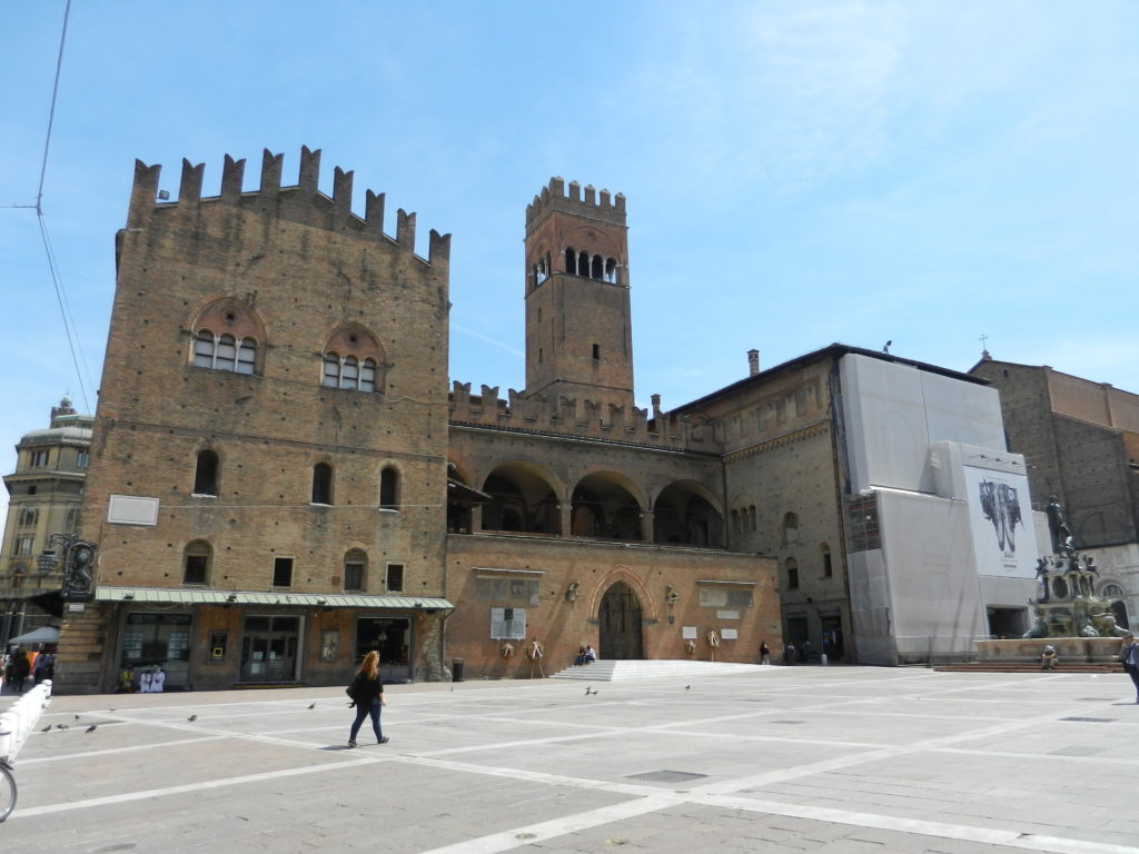 Besides the Basilica di san Petronio, the main square of Maggiore is surrounded by four “Palazzos” (palaces) of great importance. West is the Palazzo d’Accursio, the former city hall and now a civic art museum. Palazzo dei Notai, south west of the piazza, was once a notaries’ guild built in 1278. East is the Palazzo dei Banchi, a renaissance styled palace and former banking centre. To the north of Maggiore is Palazzo del Podestà, a former police and justice office built in 1200. Directly behind and connected to the Palazzo del Podestà is the Palazzo Re Enzo, built after Podesta as the “new palace” and residence of the King. Too many palaces in my opinion, but they are each uniquely beautiful and open for visitors.
