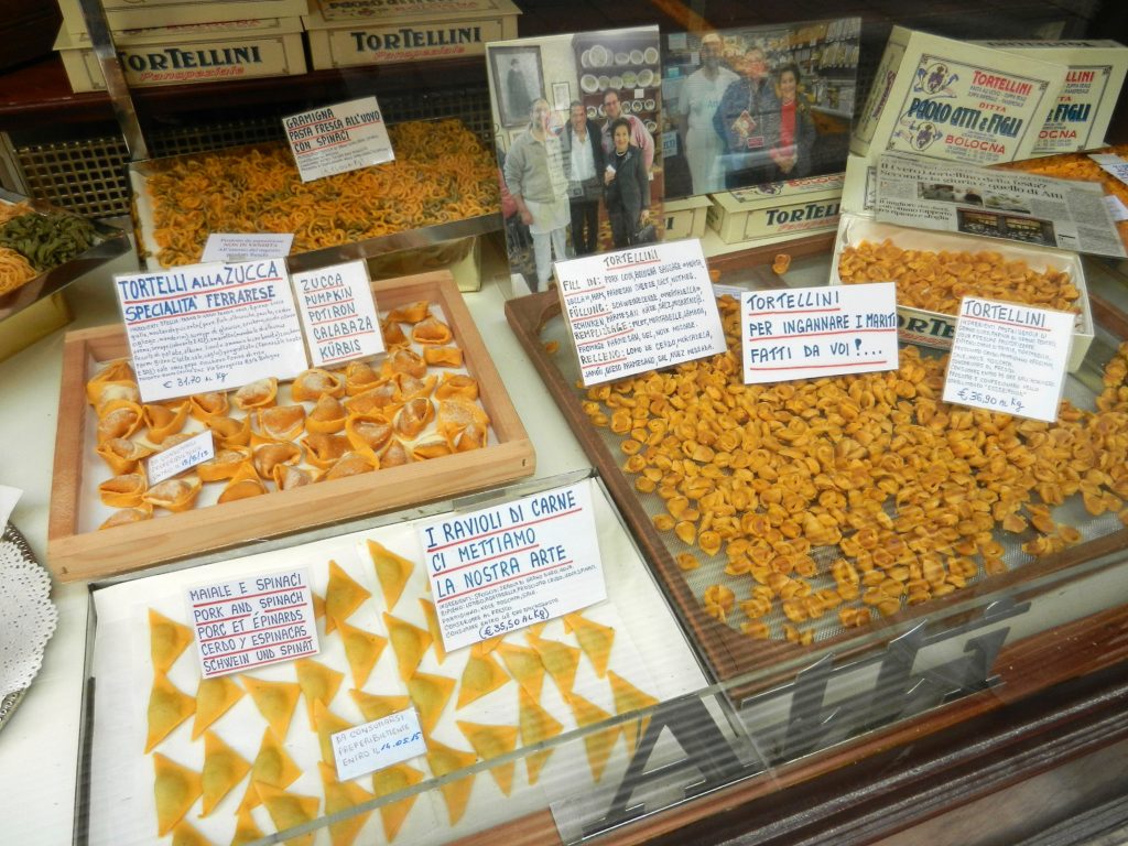Following along these shaded pathways, we walked into the Quadrilatero, the old market district of Bologna. In this section of the city you can find all the rich foods Bologna is known for. Market stalls line the Quadrilatero’s cramped streets selling vegetables and merchandise, while the salumerie shops offer cold cuts, fresh pastas and rare cheeses. When in Italy don’t pass up the fresh pasta; it’s cheap, and ten times tastier then your typical dried macaroni.