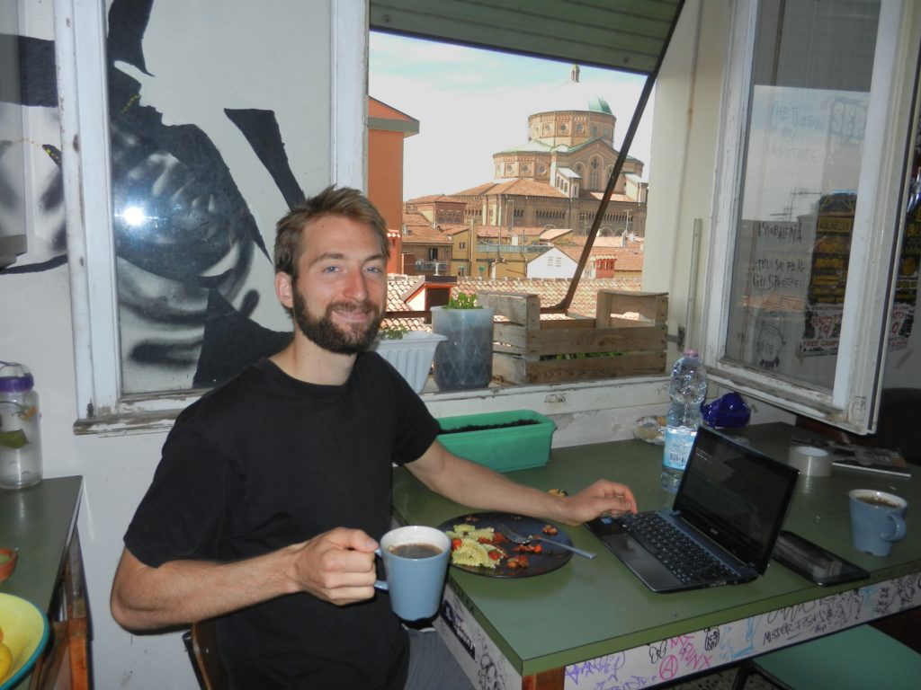 As per usual, Ashleigh and I had booked the cheapest room possible through airbnb as a home base for our Bologna tours. We arrived in the evening and headed straight for our apartment in Bolognina (little Bologna), a neighbourhood just north of the city. Our punk rocker roommate was friendly enough, and we shared a queen-sized bunk-bed that he had cleverly built himself to save space (we got lower bunk). Dumping our unwieldy luggage, we hit the town to do a bit of night exploring and hopefully find some delicious Bolognese food.