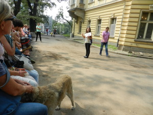 Dog getting pat