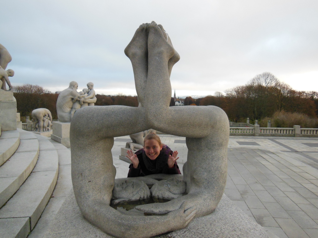 Following Siv and Terje’s advice, we set out the next day to explore Ekeberg park and its new sculptures. Unlike other sculpture parks I’ve seen before, where you leisurely walk down a path flanked with statues and their descriptions, this one required a bit more on your part. You actually had to find the statues! Some were along the paths (one that was disguised as a lamppost scared the crap out of me when it suddenly started talking and blinking), but others were off in the forest or hiding in trees or just a ways off the beaten path. After an hour or two *cough* four *cough* of searching for statues (those of you at home know how much I love scavenger hunts :)) we found our way to the bottom of the mountain/park. We spent the rest of the day wandering around the city taking pictures, eventually stumbling onto the botanical gardens. It’s too bad that it’s fall and there wasn’t too much growing, but we did see a neat little garden where willows had been laced and woven into cool designs. We could have gone into the Munch Museum, but opted to save it for another day.