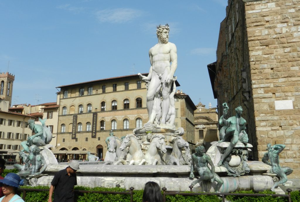 Sculptural and statue work adorns the square, and a copy of Michelangelo’s David (the original is in the Accademia Gallery) watches over the entrance to the Palazzo Vecchio. After seeing the fortress, the Loggia dei Lanzi is the perfect spot for a rest and to take in the scene. It’s an open-air sculpture gallery designed by Orcagna in 1376, and it’s free! You can find a variety of masterpieces in this open-air gallery, including the gory statue of Perseo by Benvenuto Cellini, a bronze sculpture of the Greek hero Perseus holding up Medusa’s severed head commissioned by Cosimo I de’ Medici in the 16th century. One of my favourites is the Fontana di Nettuno, the Fountain of Neptune. Also commissioned by Cosimo I de’ Medici, it was sculpted by Bartolomeo Ammannati and apparently not initially appreciated by the Florentines who dubbed it “the white giant”. I like it though!