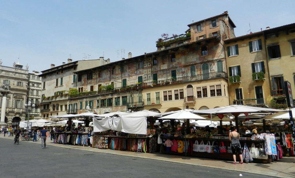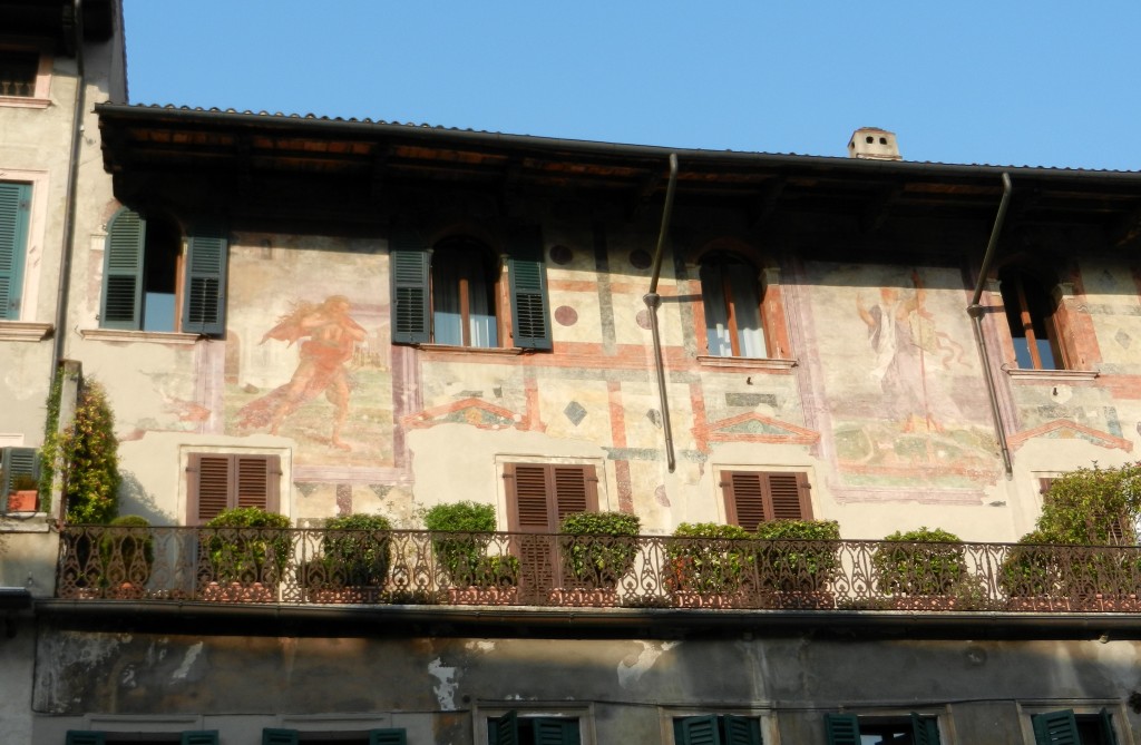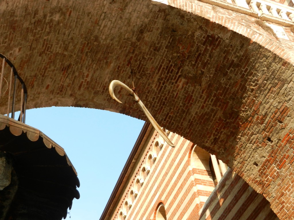 My favourite place in Verona would have to be Piazza delle Erbe. This busy market square was originally a Roman forum, so it’s no stranger to the bustle of feet or the chatter of gossip. Through the centuries the Piazza delle Erbe has been an economic and political heart of Verona, and now it is no different. Filling the square are stalls peddling souvenirs, fresh fruit, and sandwiches– surrounded by restaurants and cafés eager to entice you in for espresso and pasta. Don’t forget to look up! Exterior murals decorate the upper floors of several of the buildings lining the square. You’ll also spot a 500-year old whale bone hanging from Arco della Costa, which supposedly will fall when someone who has never told a lie walks beneath it (…aw, it didn’t fall on me :(… wait…).