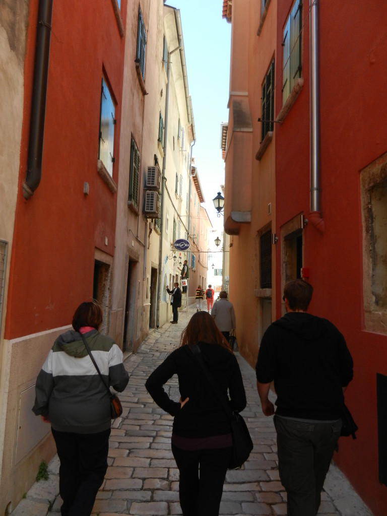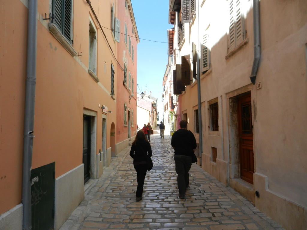 Our next visit on the road through Istria was Rovinj, an authentic, Mediterranean fishing harbour contained within a small peninsula. Fishing boats still cast their nets all along the port and around the green islands just off Rovinj’s shore. Leaving the crowded fishing port behind we immediately got lost in a maze of terracotta topped houses and thin alleyways. The world is catching wind of Rovinj as a tourist attraction and the locals have tried to dress it up as quaint as possible, repainting their homes in pastel colours and opening souvenir shops and hotels. Rovinj was really one of those towns where you can enjoy yourself immensely simply by walking about on a nice day, enjoying a coffee in the main square or going for a swim off the terraces along the water. If you have money to spend, during the day there are plenty of shops and art galleries happy to show you their wares, while bars and restaurants are open and ready to celebrate the night with you.