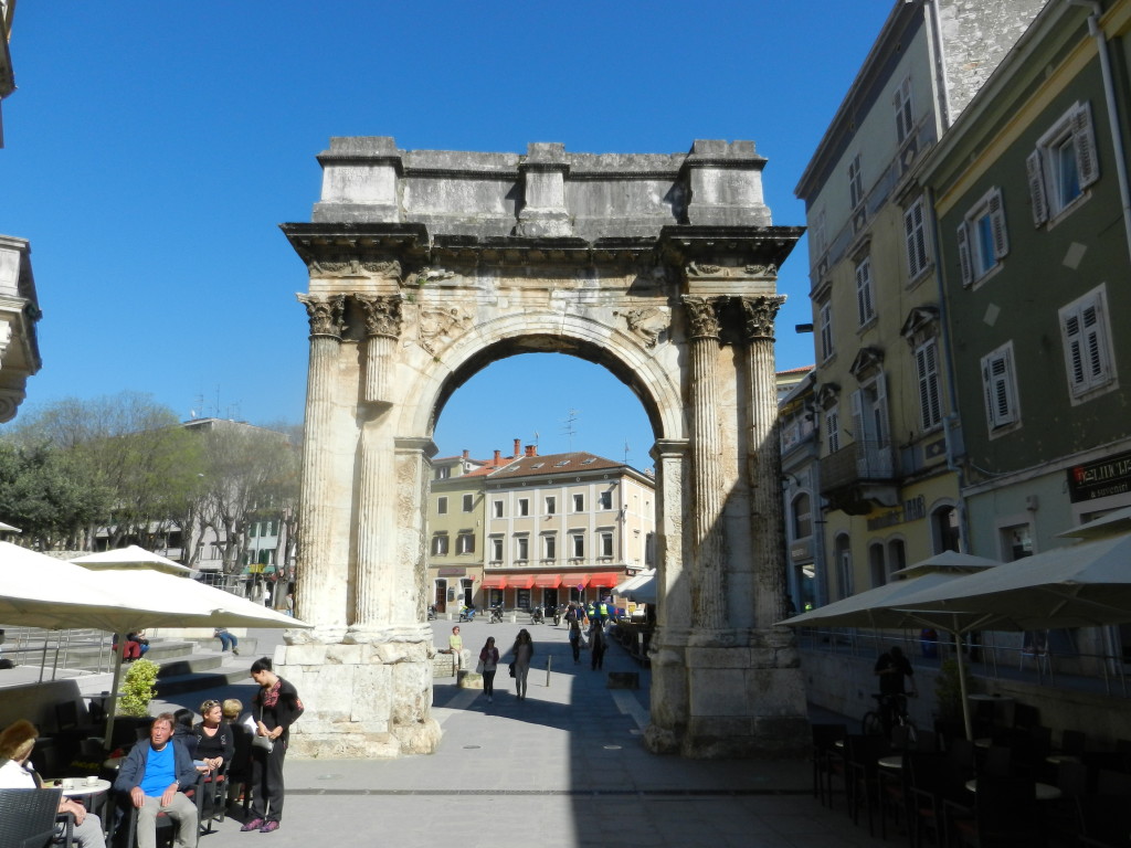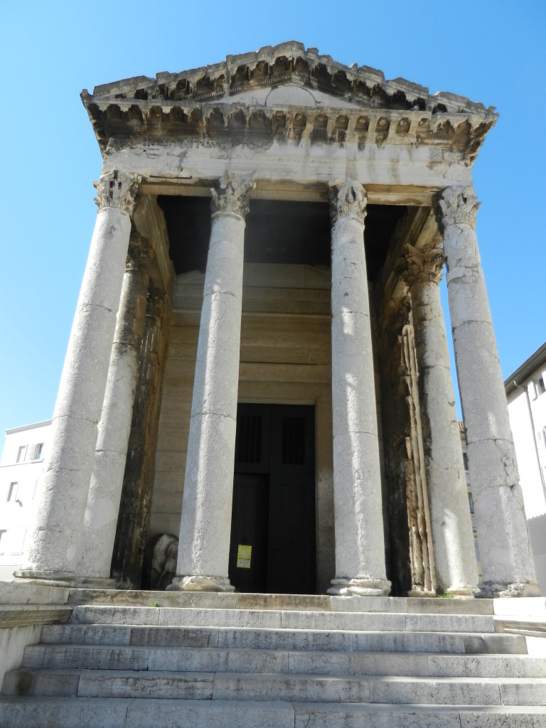 Amongst the many other Roman structures that have been amalgamated into the city, the Golden Gate and the Temple of Augustus stand out in their beauty and completeness. Upon entering the old town you will first pass under the Golden Gate, the Triumphal Arch of the Sergi, a Corinthian-style masterpiece. This 2000 year old Roman wonder still stands in excellent condition and is richly decorated with carvings of plant life, garlands and winged victories.