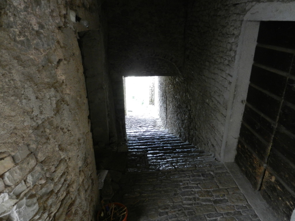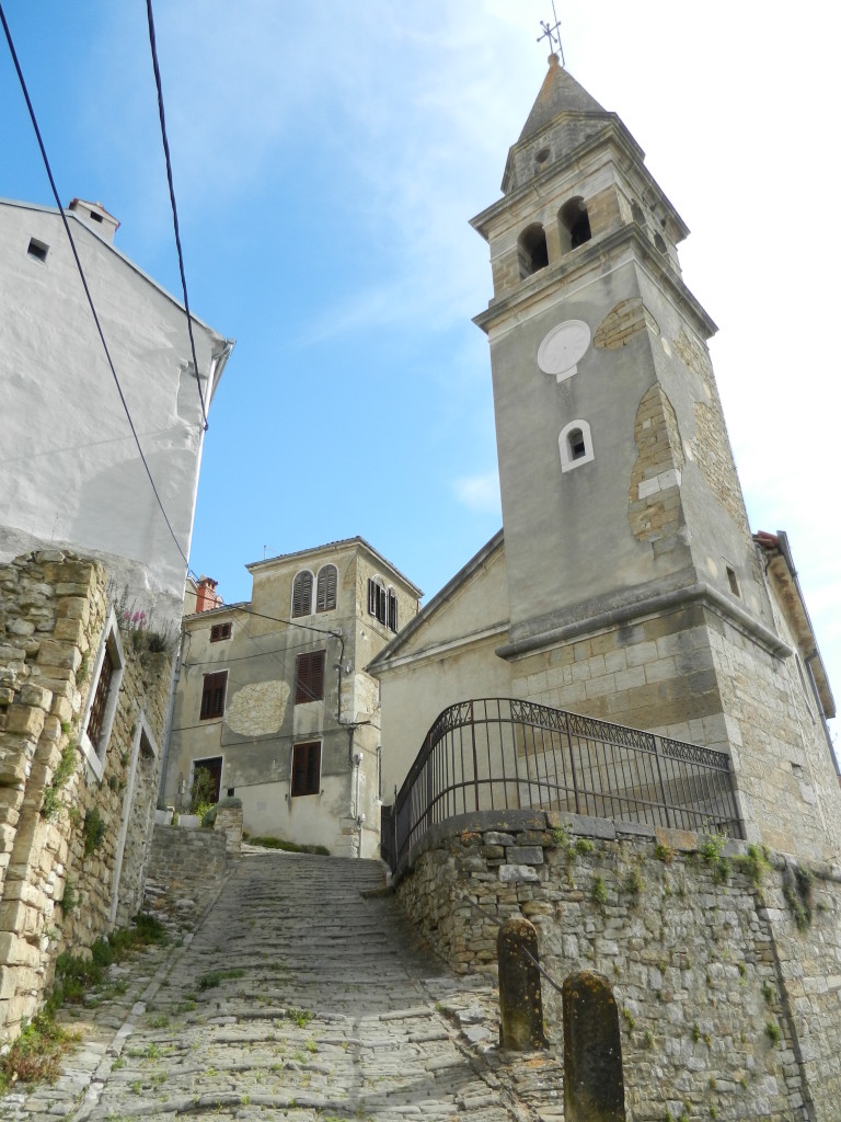 After a weary minute I reached the base of Motovun mountain. I shrugged off gleaming, white shirts trying to get me to pay for parking at the top, “Cuz I ain’t got no wheels,” and proceeded to climb the ancient, stone steps worn smooth by centuries of pilgrim pedestrians. There is a road to drive up to the top of Motovun if you want to save your energy, but I actually found the ascent to be my favourite part of the whole experience. Steadily up the moss covered steps I clambered, winding slowly up the mountain between the medieval, stone houses of the village. Every once in a while I’d explore a side alleyway, peak into the windows of an old church, or take a look behind me at gorgeous views of the Mirna Valley.