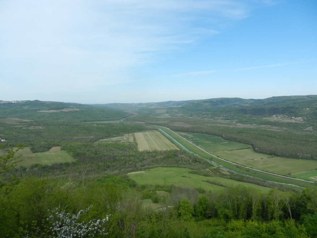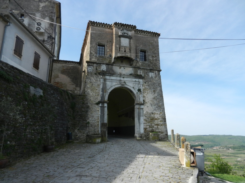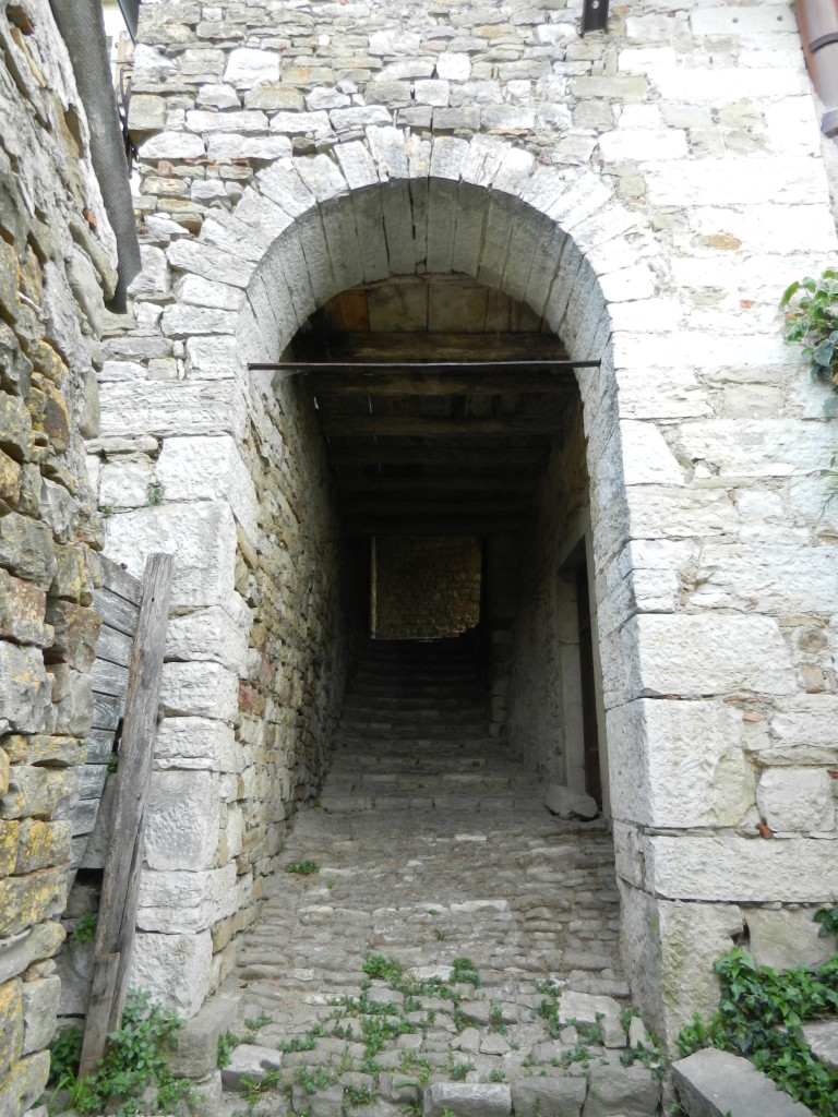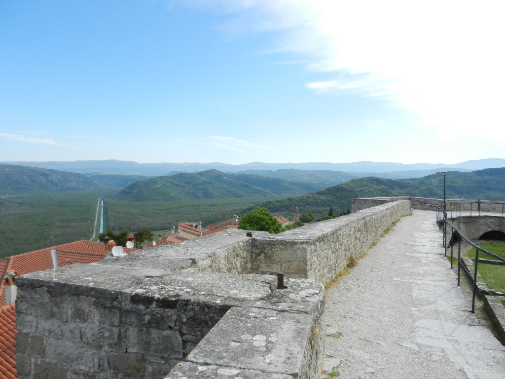After passing through several tunnels and archways, I finally arrived at the main gatehouse of Motovun’s fortress, adorned with royal crests and the Venetian winged lion. I wish I could say the winged lion sprang to life and asked me a riddle, but that shockingly didn’t happen. The old town within the fort is small, with a church and a few cafes, but the walk around the outer wall is spectacular and worth the climb. Motovun’s defences gives you wonderful, 360 degree view of the Mirna valley and forest for miles around (or of approaching armies, if you prefer).