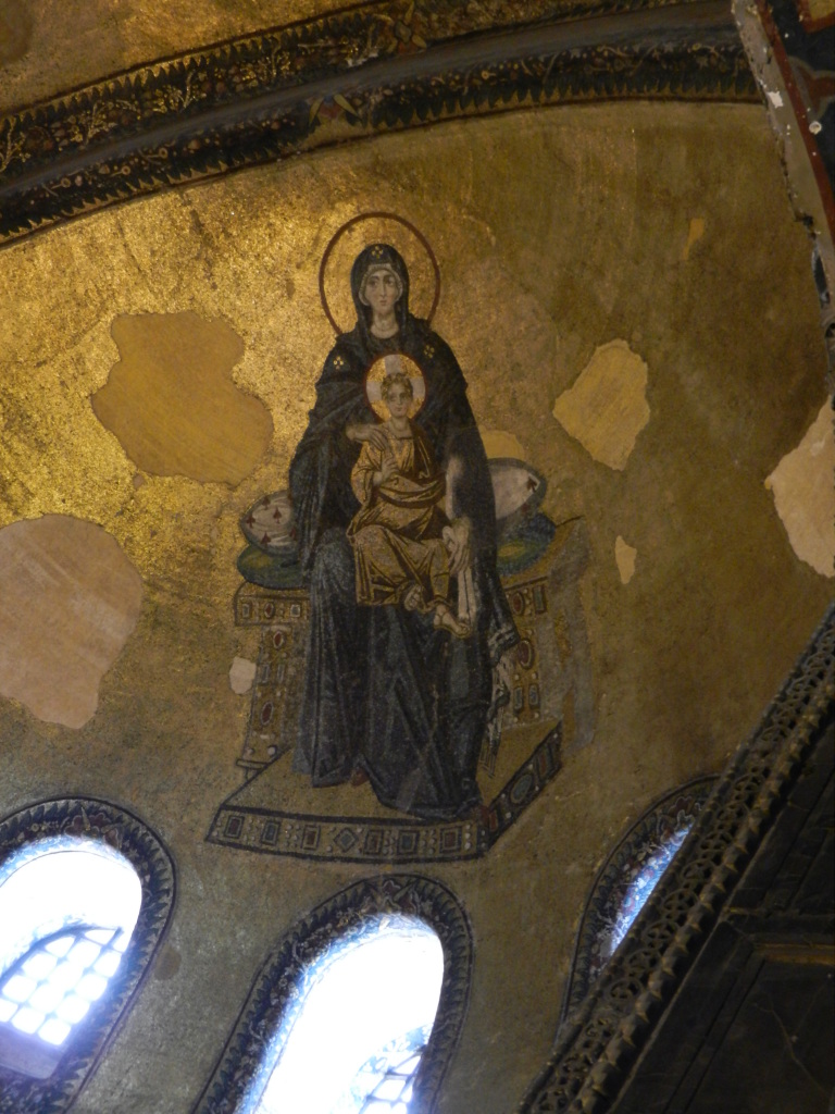 What I liked most about Hagia Sophia was seeing this amazing blend of religions and cultures. When the church was converted to a mosque, the Christian mosaics and iconography were either removed or plastered over, with the exception of the image of the Virgin Mary and child. With recent restoration work, you can now see some of the incredible Christian mosaics alongside medallions bearing beautiful, calligraphic inscriptions of the names of Allah. Visitors from all over the world have visited over the centuries, some leaving behind a little bit of themselves for people to wonder at. While I HATE people who feel the need to carve their names into historical places, I had to admit it was kind of funny/cool to find Nordic runes left behind by a Viking mercenary in the 9th century.