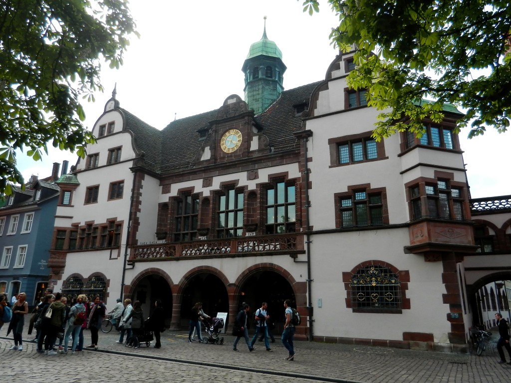 Immediately prior to almost taking a dunk in the bächle, I mentioned that I was checking out the town halls. I say “halls” because both the Altes und Neues Rathaus (Old and New Town Hall) can be found on the west side of Rathausplatz. The old town hall was born out of a few old homes in the mid-16th century and served the town administration faithfully for a few centuries before eventually turning to Freiburg visitors as the Tourist Information Centre. The new town hall was created at the turn of the 19th century from Renaissance-era town houses.