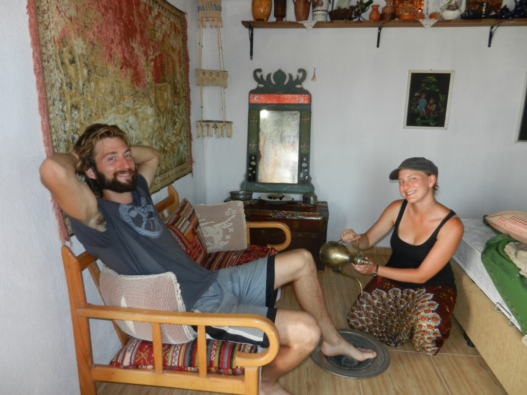 We were planning on slowly making our way north along the Aegean coast, stopping at two Workaway hosts and a couple historical sites along the way. Our first host in Turkey was Hülya, a wonderful Turkish woman living near the summer resort town of Dikili. Days were blazing hot; I felt like I was sweaty from sunrise to sunset. Lucky for us, Hülya organized the day so that we worked a couple hours early in the morning before it got too hot and then had a break until the evening when it got cool(ish) again. Most of our first week was spent weeding out Hülya’s large yard and mulching the plant beds with a couple of volunteers from the United States. The second week we were on our own helping to clean and patch up the adorable guest cottage Hülya had renovated and build a new oven to use on warm summer nights.