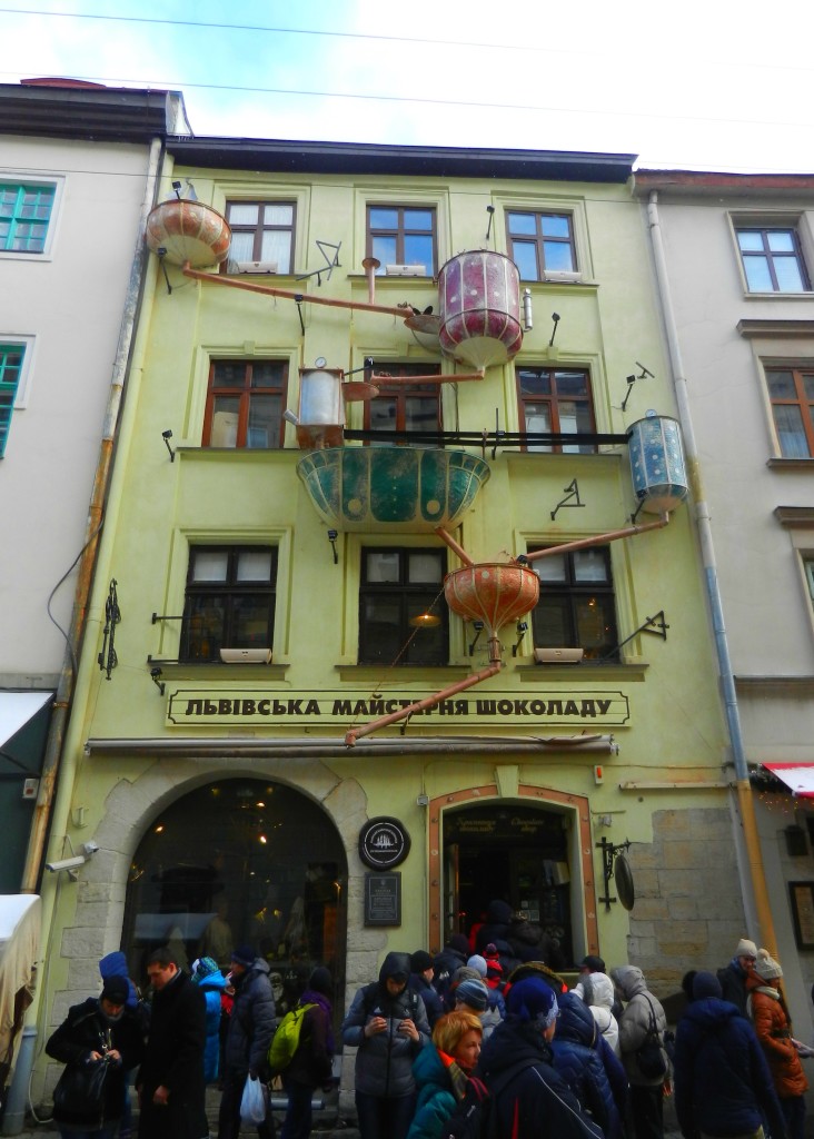 Lets start off with one of my favourite spots: the Lviv Chocolate Factory. That’s right. You thought it would be something beautiful or historical, but it’s CHOCOLATE that makes the biggest impression! The scent of handmade, fresh chocolate wafts through this Willy Wonka-esque building with multiple floors of workshops, cafes, and stores where you can stock up on all your cocoa needs. The cafe serves a hot cocoa that is, quite literally, a cup of thick, melted chocolate. Too decadent, you say? It was HEAVEN. My favourite of their wide selection of individual pieces of paradise was the “Coffee Fun“, a creamy, coffee chocolate topped with an espresso bean. So, as everyone else in the city will tell you, don’t forget to visit Lviv’s chocolate shop!