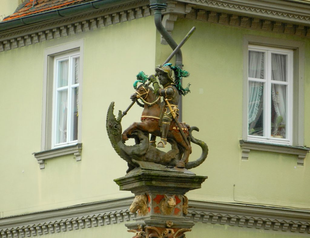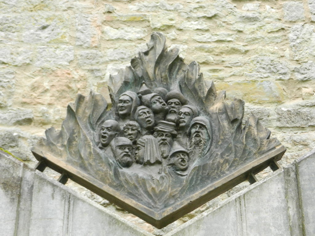 And yet, as it is for all things beautiful there is an ugly side to Rothenburg. If you make your way to the western outskirts of the town you will come across the castle gardens, where an ancient fortress used to stand. Close to the Chapel of St. Blaise is a memorial depicting villagers being burnt alive. The Pogram Memorial Stone tells the story of Rintfleisch, an impoverished nobleman, who started a series of uprisings across Franconia persecuting Jews. In July of 1298, Rintfleisch and his mob corralled the Jewish Rothenburg citizens into the old castle and set it aflame. 450 Jews burnt to death that day, and 5000 in all Franconia because of Rintfleisch, but that wasn’t the end. In 1336, 1338, and 1342 more uprisings occurred in which the Jews, who had just moved back in, were murdered or driven from the city. In 1348, accused of causing the Bubonic plague, they were chased out again.