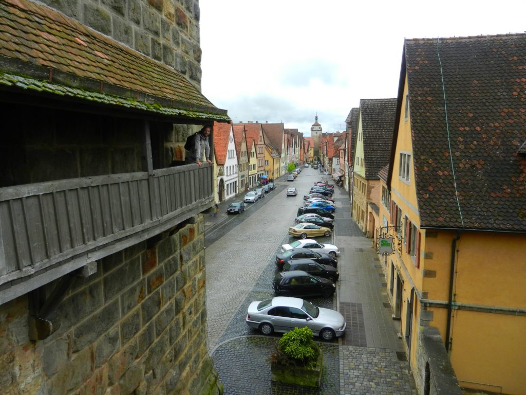 Looking out from the wall you can see rolling forests and the Tauber River stretching to the horizon. Homesteads, churches, and patches of farmland dot the landscape. I peered down through the arrow-loops and imagined myself as an chain-mailed soldier, defending my beloved town from invaders. Looking inward from atop the ramparts you can basically get a 360 degree view of the old town. It used to be the second largest municipality of Germany during the middle ages, but the devastation following the Thirty Years War left Rothenburg in destitution for 250 years. Lucky for us, because it was too poor to expand and develop, Rothenburg’s medieval authenticity has been preserved.