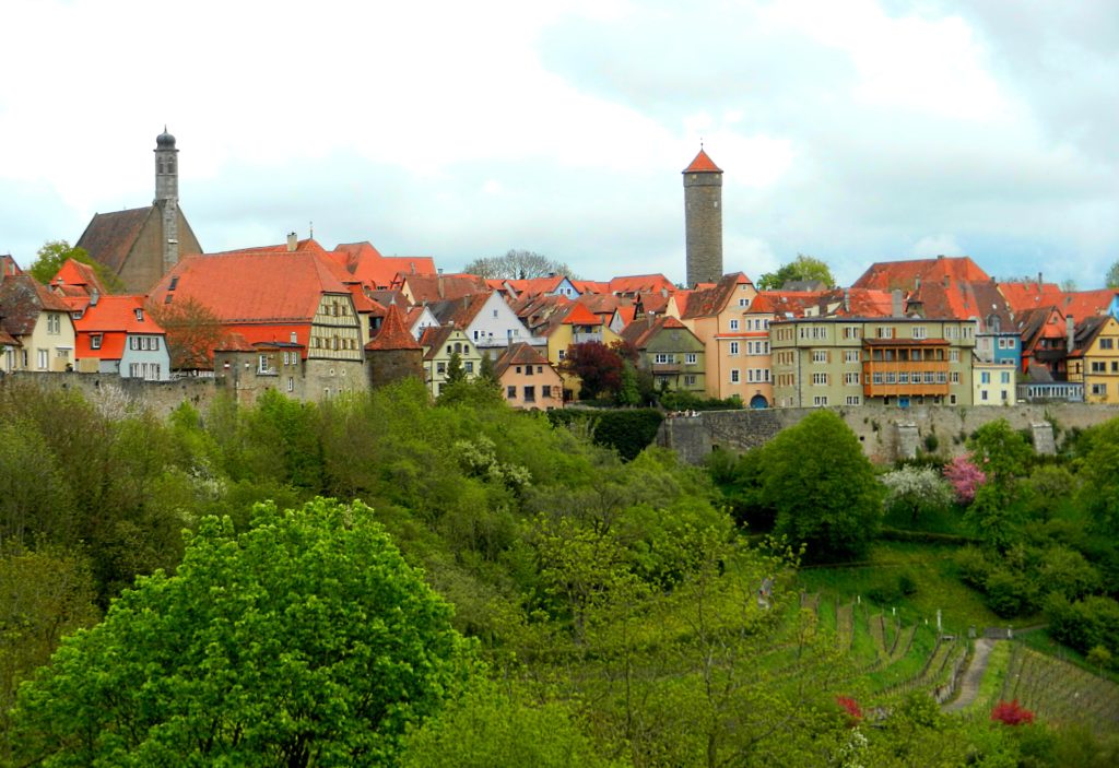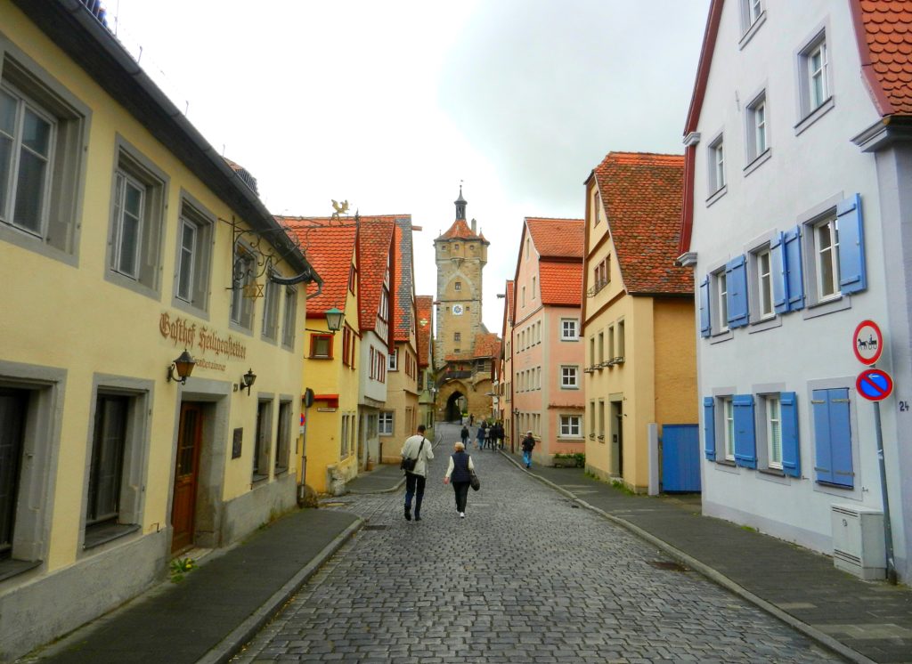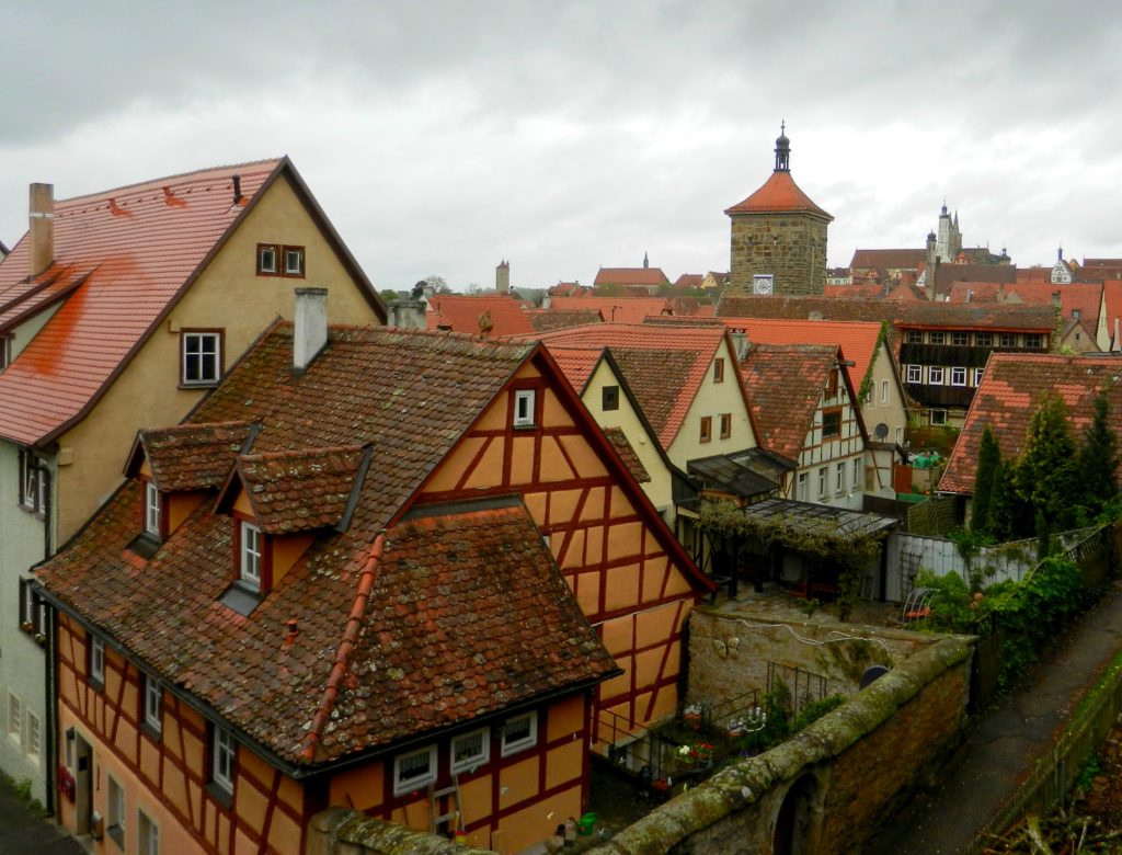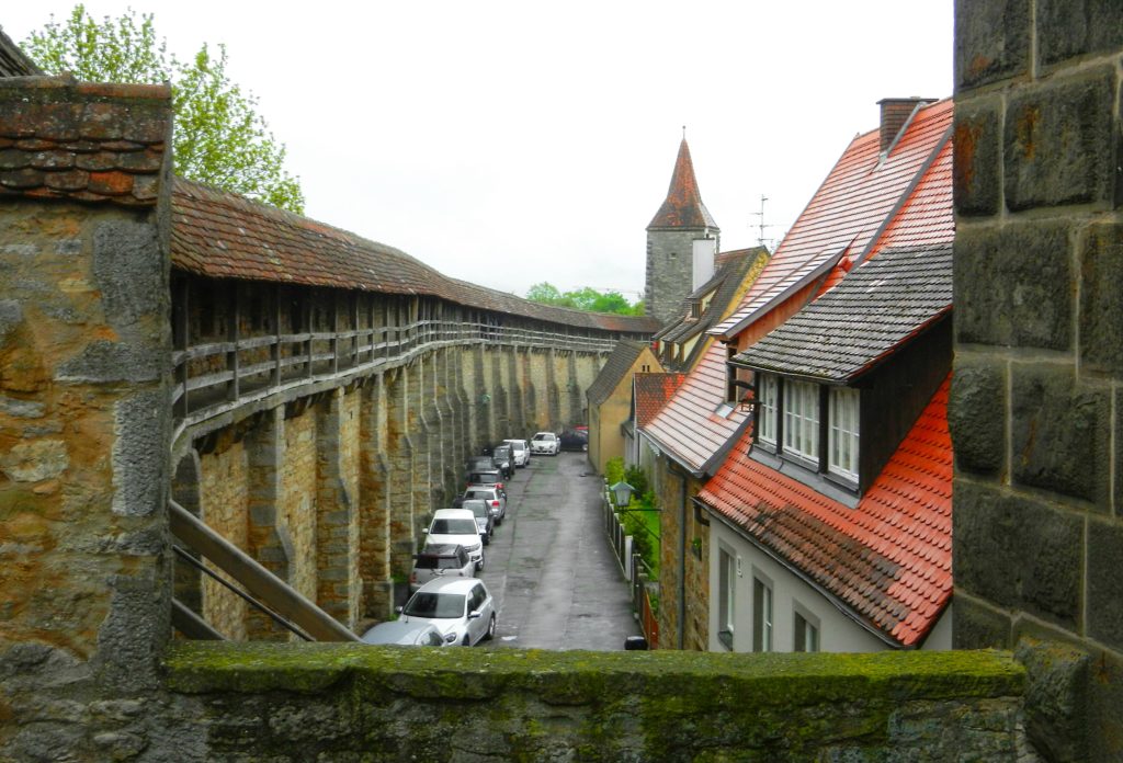 First thing I had to do was walk along the old town wall that girdles Rothenburg. This impressive, 2.5 km bulwark repelled invaders for hundreds of years but was partially destroyed in World War II. The Allied forces bombed Rothenburg in 1945, demolishing 2000 feet of the wall along with nine watchtowers, six public buildings, and 306 homes.