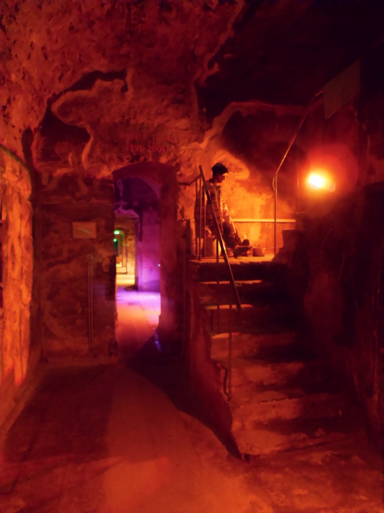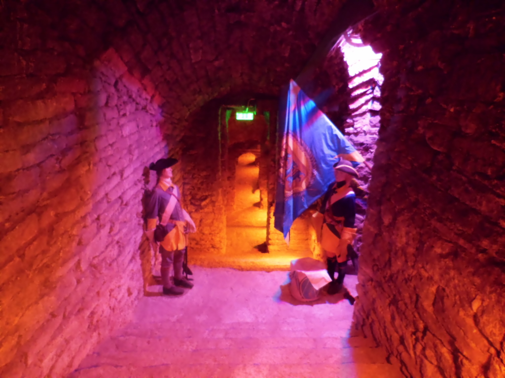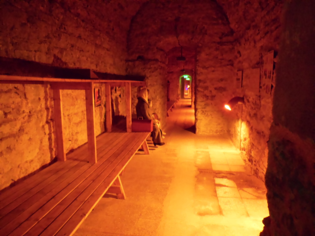 After a tour of the museum, we went for a second tour of the extensive bastion tunnel system below Kiek in de Kök. The earliest tunnels were constructed in the 1630’s, and the system became more extensive as the Swedish Bastion and Ingermanland Semi-Bastion were built. They have had a variety of uses over the years, including as store rooms, prison cells, air-raid shelters, and even homes for the homeless.