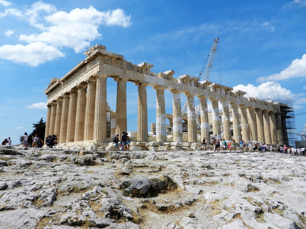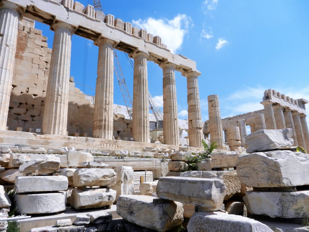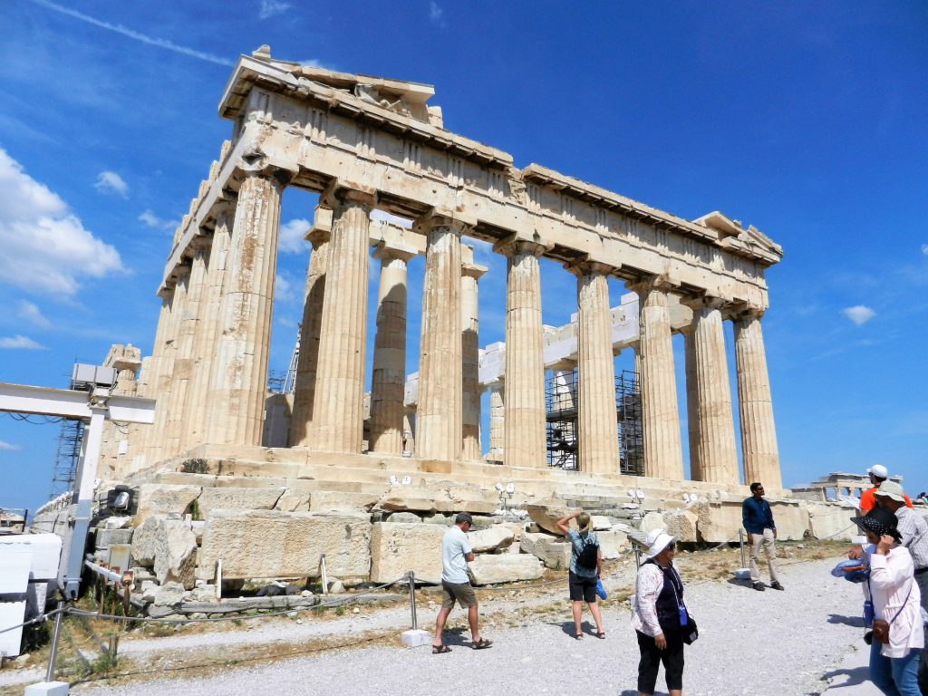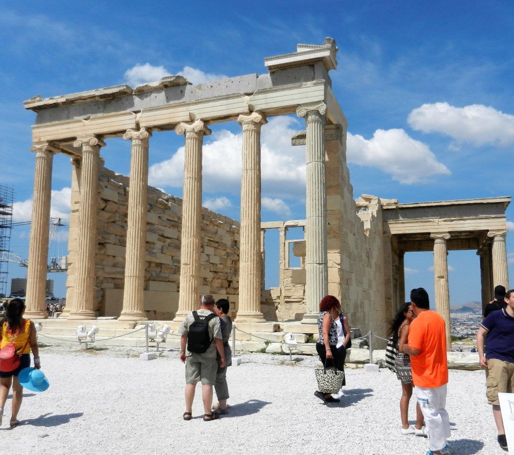 The Parthenon stands out immediately as you enter the Acropolis. This lofty temple was built in 432 BC and dedicated to the patron goddess of Athens: Athena. The Parthenon is the finest example of classical Greek architecture in the world. Throughout the ages, the temple has been shown great reverence and respect. Instead of being torn down by foreign invaders, it was re-purposed. In the 6th century it was converted into a Christian church dedicated to the Virgin Mary. In the 1460’s, during Ottoman occupation, the temple was used as a mosque. Unfortunately, centuries of care and respect for the temple ended with an ‘accidental’ explosion.