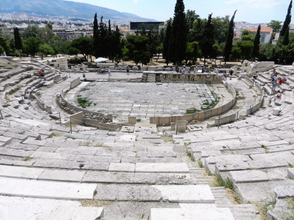 The Theatre of Dionysus is the oldest theatre in the world, built in 330 BC, a proto-type for future Roman theatres. It was built for the Great Dionysia festival, a celebration in honour of Dionysus, the god of wine, fertility and religious ecstasy.