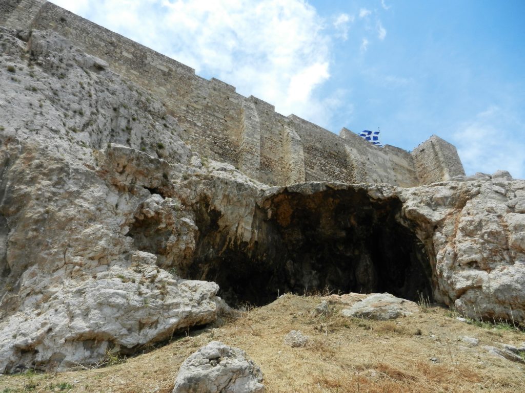 Just when you thought it was all over, there’s a lot more to the Acropolis than the Parthenon. After visiting the main sites of the Acropolis I wanted to take a walk around the hill to look at its fortifications. I’m glad we did because there’s a lot more to see at the base of the hill. There are several caves on the north side of the hill that were lived in during Neolithic times. Over time, as the Acropolis evolved into a sacred area, these caves became shrines for the gods. Settlements on the south side of the hill were developed into theatres and sanctuaries.