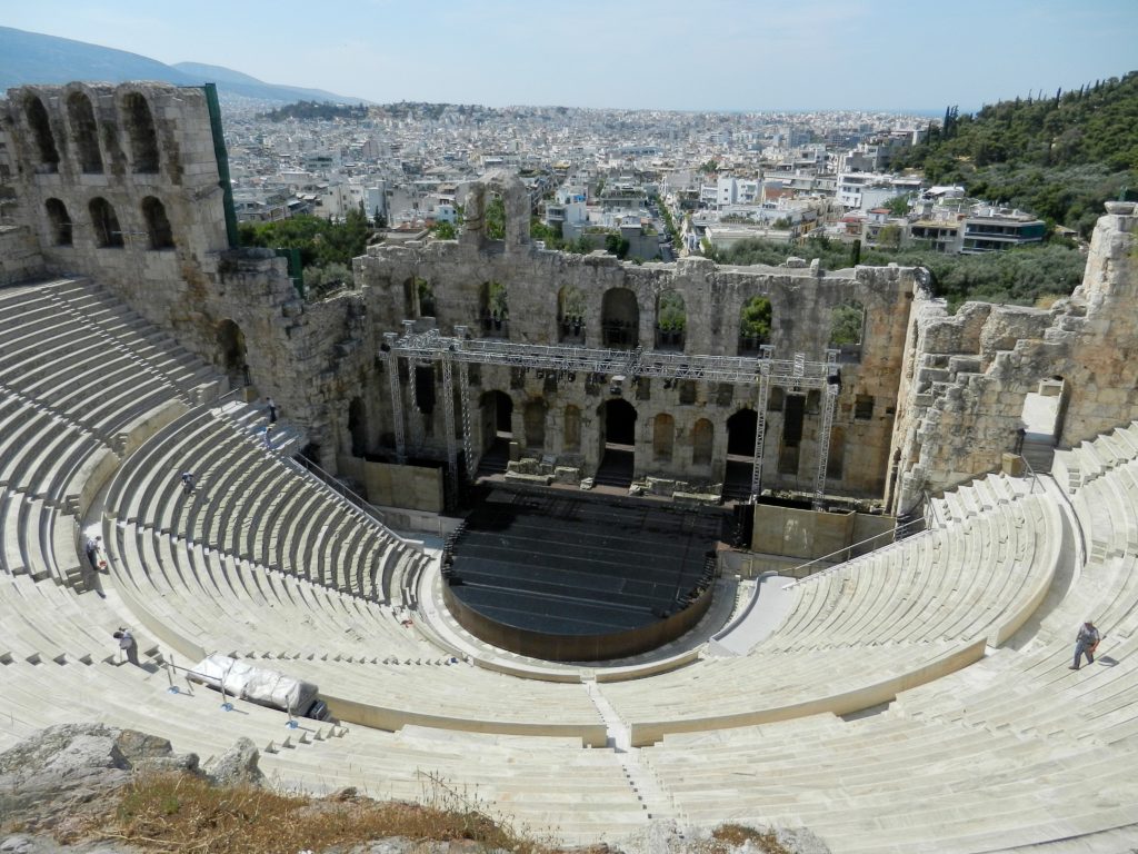 The Odeon of Herodes Atticus and the Theatre of Dionysus are hard to miss. The Odeon has a three story facade, holds an audience of 5000, and used to have a cedar roof. It was originally built in 160 AD and it is still used for concerts today.