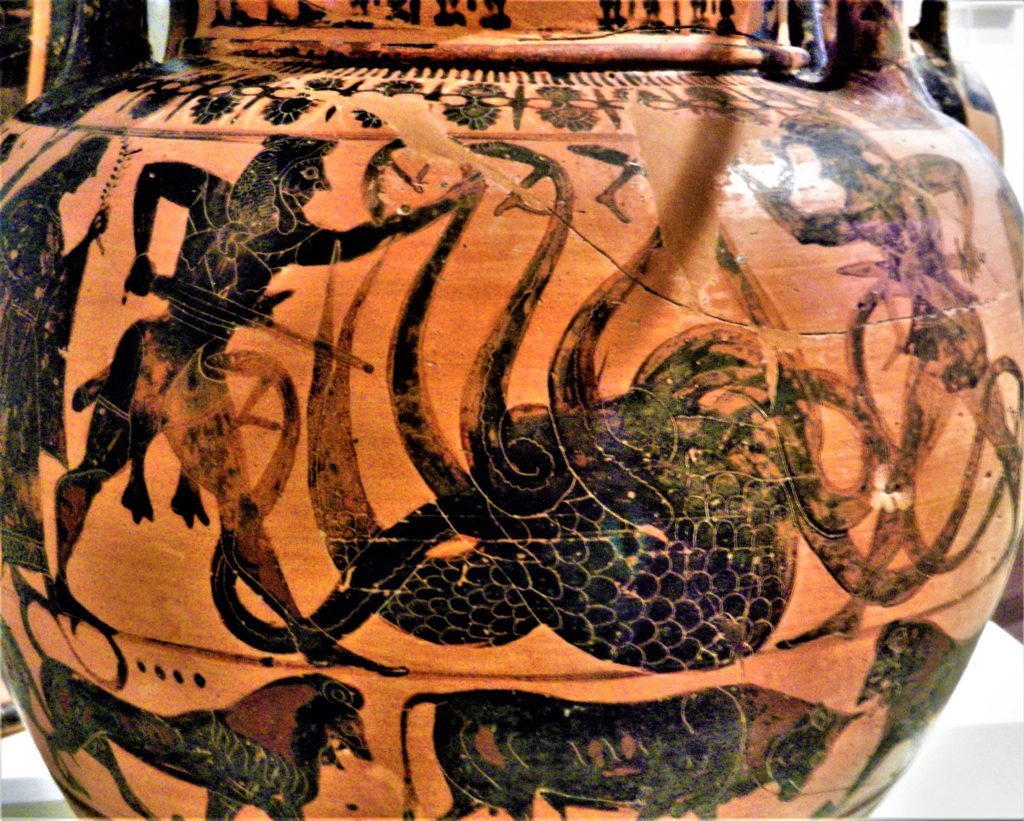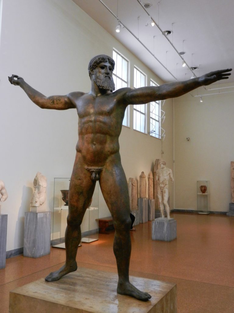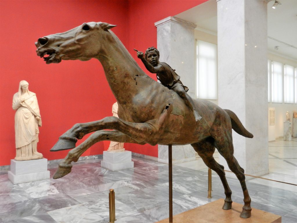 The entrance fee for the museum wasn’t included in our multi-pass, but for a mere 5 euros you get to see Aegean artifacts as old as 6000 BC to the Classical era. Exquisite gold relics, ancient weapons, black figure pottery, and mythological sculptures are housed in this 8000 square metre building. Wandering, overwhelmed, through its 15000 exhibits, I recognized many sculptures and vases depicting popular Greek myths. A bronze mask of Medusa, a marble sculpture of the Minotaur, and a vase depicting Heracles battling the Hydra filled my mind’s eye with the legends I heard growing up. I saw the famous golden mask of Agamemnon, an artifact I distinctly remember from my high school textbook. My other two favourite treasures were the bronze statue of Zeus and the Horse and Jockey, both found at the bottom of the sea.