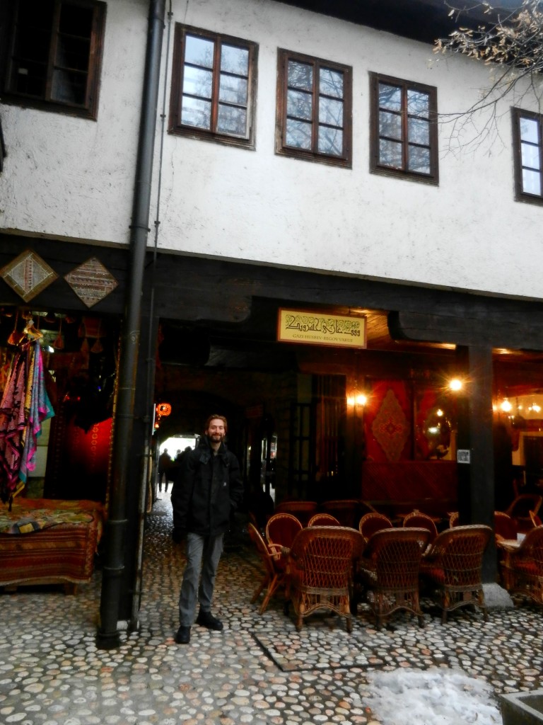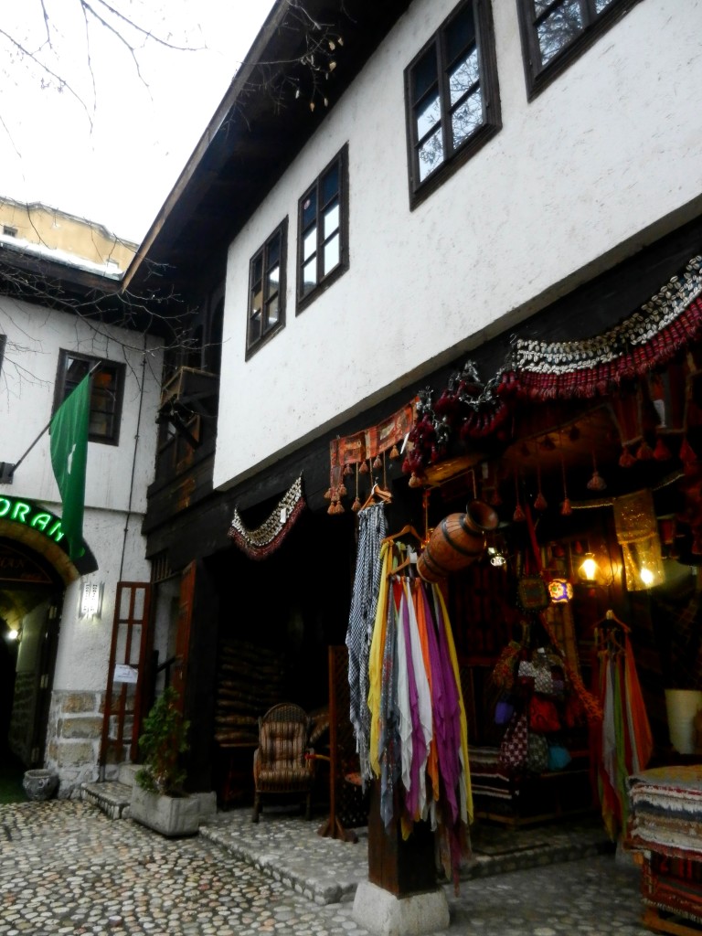 The rest of the tour took us all around Sarajevo’s old town, giving glimpses at various points in Sarajevo’s long history. We briefly stepped into Morića Han, a caravanserai or roadside inn, which was built in 1551 to service the traders coming and going from Sarajevo’s bustling marketplace. The han still operates to this day for purposes that match historical context, including a restaurant and Persian carpet shop. The beautiful mosaic lamps I fell in love with in Turkey lit up the wool carpets, and once again I had to remind myself that no, the lamps would not survive the next several months in my backpack, don’t even try.