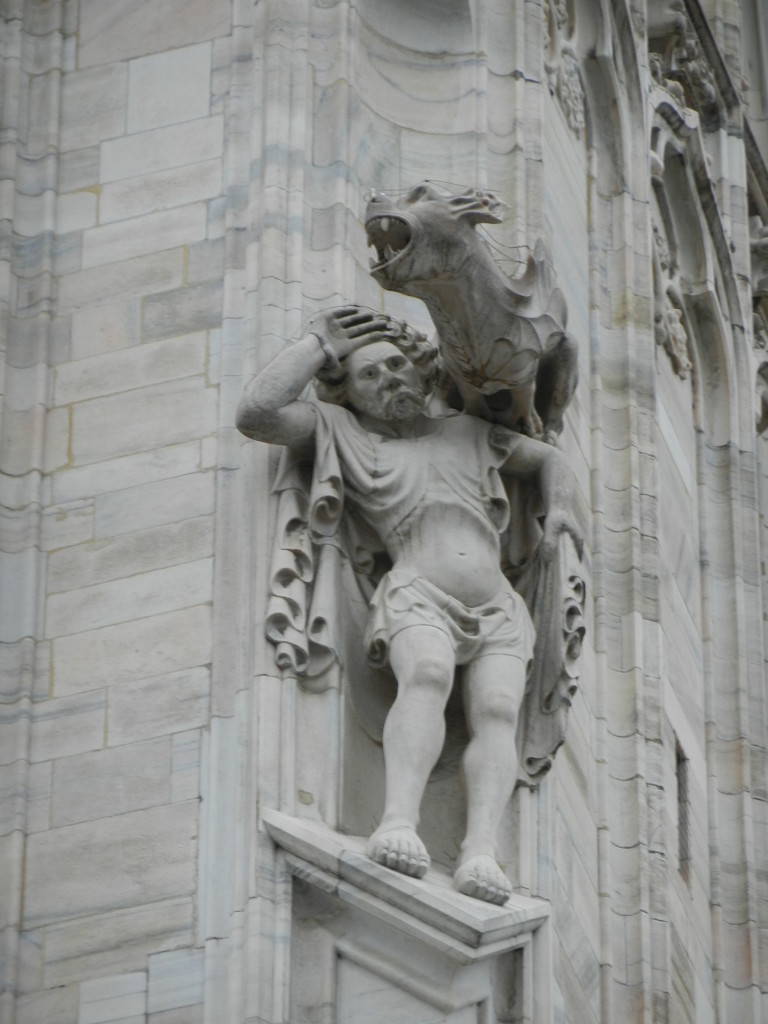 Walking past the procession I gazed upon many sculptures and icons but the statue of the martyr Saint Bartholomew, flayed and wearing his skin like a cape, stood apart from the rest. Beyond poor Bartholomew we descended into the crypt of saints, as beautifully ornate as the cathedral, illuminated by glittering chandeliers. At the end of the hall was the body of Archbishop Carlo Borromeo contained within a glistening glass coffin. As the lines of tourists kept pouring in, flashing pictures and gazing into the saint’s transparent tomb, I wondered if Borromeo ever gets a moments rest.