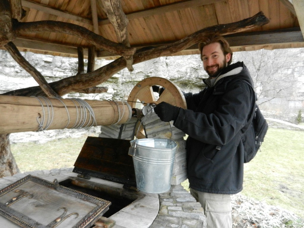 On the way back to town we passed the Church of the Exaltation of the Cross. This traditional, wooden chapel was a marvel with its exquisitely carved beams and complicated rafters covered with thousands of delicate shingles. There was also an old well which I fiddled around with a bit.